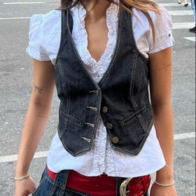 Damen Denim-Weste mit eleganten Knopfdetails und modernen Taschen Amawinc