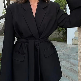 Damen Elegante Blazerjacke mit Gürtel und Taschen Amawinc