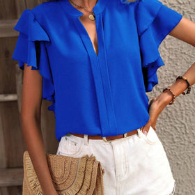 Damen elegante Bluse mit voluminösen Rüschen Amawinc