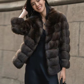 Damen Elegante Kurzjacke aus luxuriösem Kunstfell mit voluminösem Design Amawinc