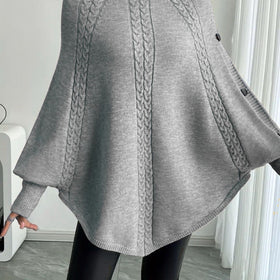 Damen Eleganter Strickponcho mit Rollkragen und Zopfmuster Amawinc