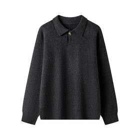 Damen eleganter Strickpullover mit Polokragen und Knopf Amawinc