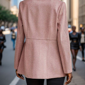 - Hochwertiges Material: Der Blazer besteht aus einem feinen Stoff in kleinem Fischgrätmuster, das für eine luxuriöse und zugleich bequeme Passform sorgt.