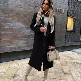 Damen Eleganter und zeitloser Wool Coat mit Doppelreiher Amawinc