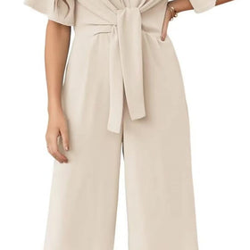 Damen eleganter Wickel-Jumpsuit mit weiten Beinen und Taillengürtel Amawinc