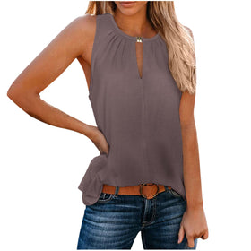 Damen Elegantes ärmelloses Oberteil mit dekorativem Ausschnitt und Falten Amawinc