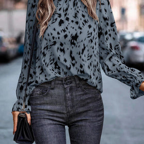 Damen elegantes Blusenshirt mit Rüschenkragen und tierischem Muster Amawinc