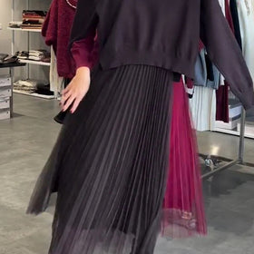 Damen Elegantes Faltenrock- und Pullover Set Amawinc