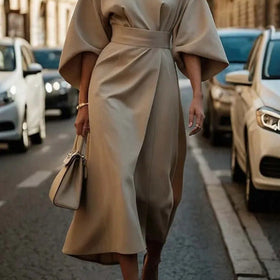 Damen elegantes Maxikleid mit Ballonärmel und tailliertem Schnitt Amawinc