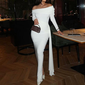 Damen Elegantes Off-Shoulder Abendkleid mit raffinierten Drapierungsdetails Amawinc