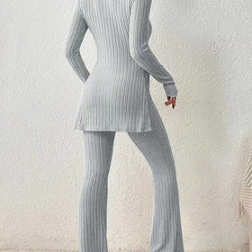 Damen Fein geripptes Lounge-Set mit langen Ärmeln und ausgestellten Beinen Amawinc