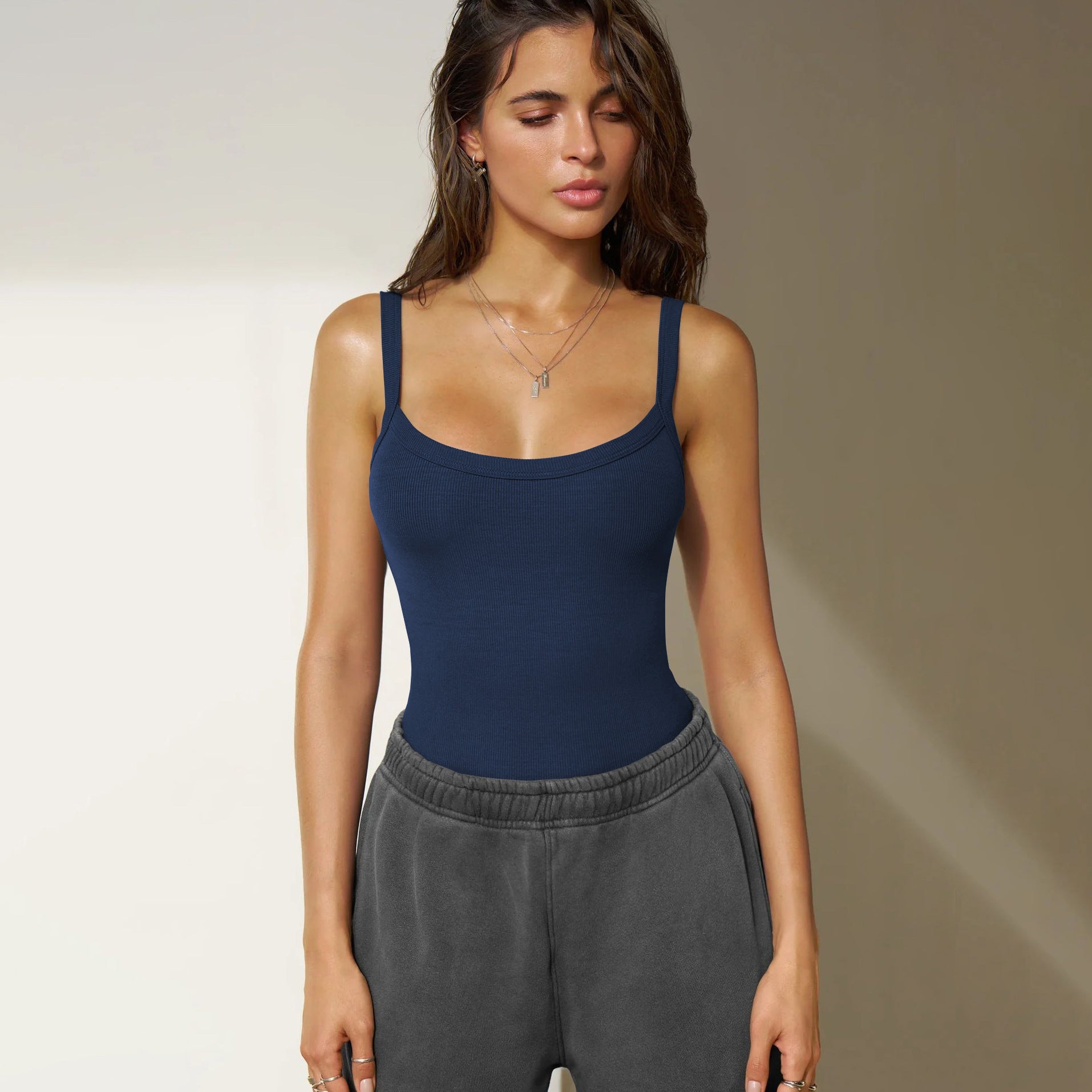 Damen Figurbetonter Body mit verstellbaren Spaghettiträgern Amawinc