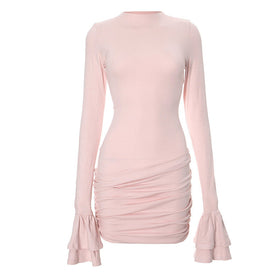 Entdecken Sie unser stilvolles Damen Minikleid, das mit seiner figurbetonten Passform und den dekorativen Rüschendetails einen modischen Akzent setzt. Die Raffung entlang der Hüfte sorgt für eine ansprechende Silhouette und betont die weiblichen Kurven. Die langen, voluminösen Ärmel verleihen dem Kleid eine originelle Note und eignen sich perfekt für besondere Anlässe oder Partys.