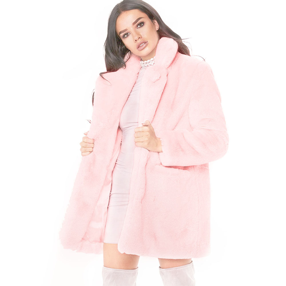 Damen Flauschige Langjacke aus Kunstpelz mit Kapuze Amawinc