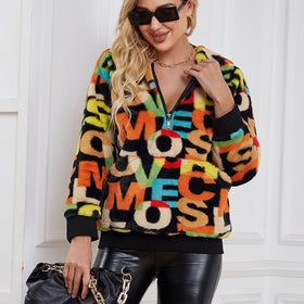Damen Flauschige Oberjacke mit buntem Farbdesign und flauschigem Innenfutter Amawinc