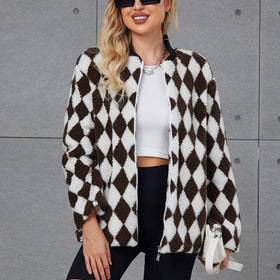 Damen Flauschige Steppjacke mit modernem Karomuster und praktischen Taschen Amawinc