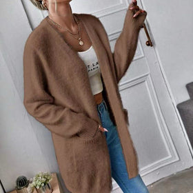 Damen Flauschiger Offener Cardigan aus weichem Material Amawinc