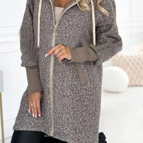 Damen Fleece-Langejacke mit hochwertigem Zipper und Kapuze Amawinc