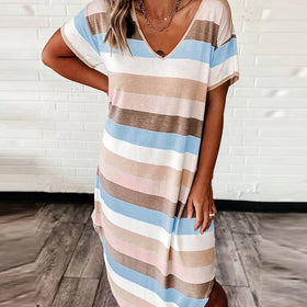 - Stilvolles Design: Das Kleid verfügt über modische Streifen in harmonischen Farbnuancen, die jedem Look eine frische Note verleihen.