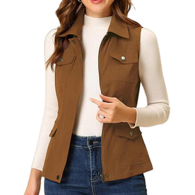Damen funktionale Campingweste mit Taschen und Reißverschluss Amawinc