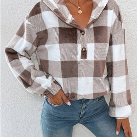 Damen Gemusterte Karo-Hoodie-Bluse Amawinc