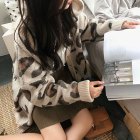 Damen gemütliche Strickjacke mit einzigartigem Leopardenmuster Amawinc