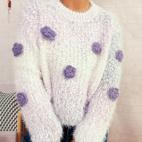 Entdecken Sie den perfekten Begleiter für kühle Tage mit unserem gemütlichen, flauschigen Pullover, der mit verspielten Blumenapplikationen verziert ist. Der Pullover besticht durch eine weiche Strickqualität, die für maximalen Komfort sorgt, und bringt einen Hauch von Eleganz in Ihre Garderobe.