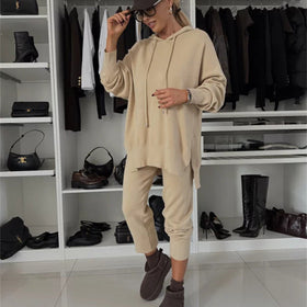 Damen gemütliches Hoodie- und Jogginghose-Set mit seitlichen Taschen Amawinc
