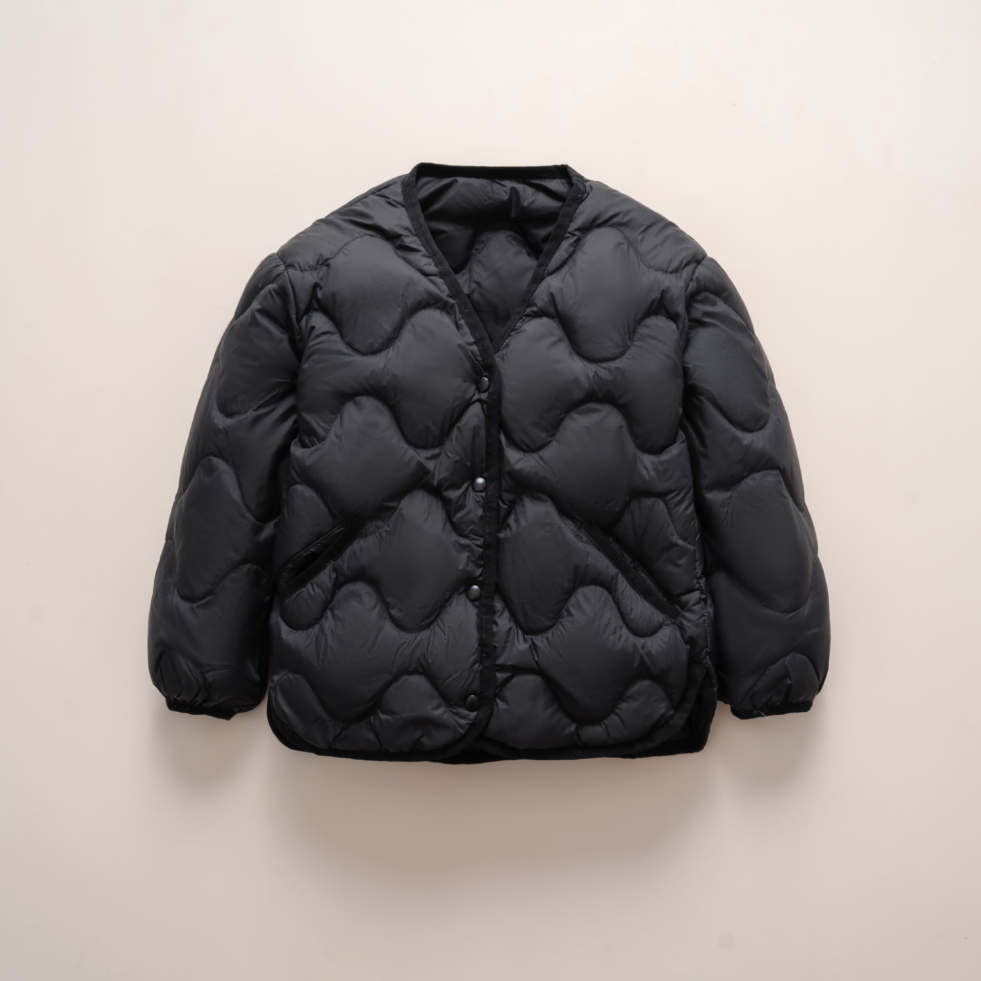 Damen gesteppte Daunenjacke mit modernen Wellenmustern und praktischen Taschen Amawinc