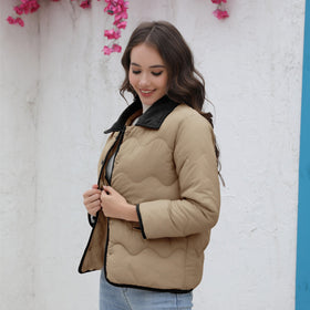 Damen gesteppte Kurzjacke mit schickem Kragen Amawinc