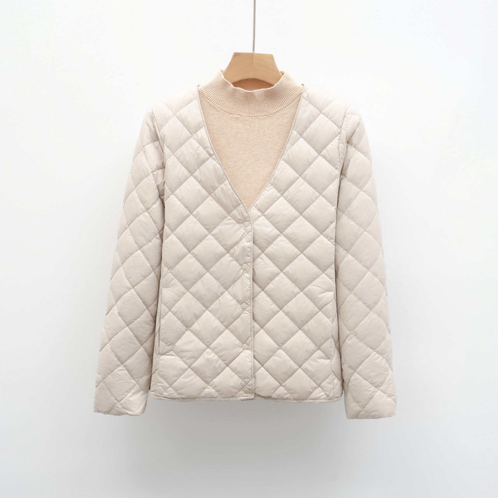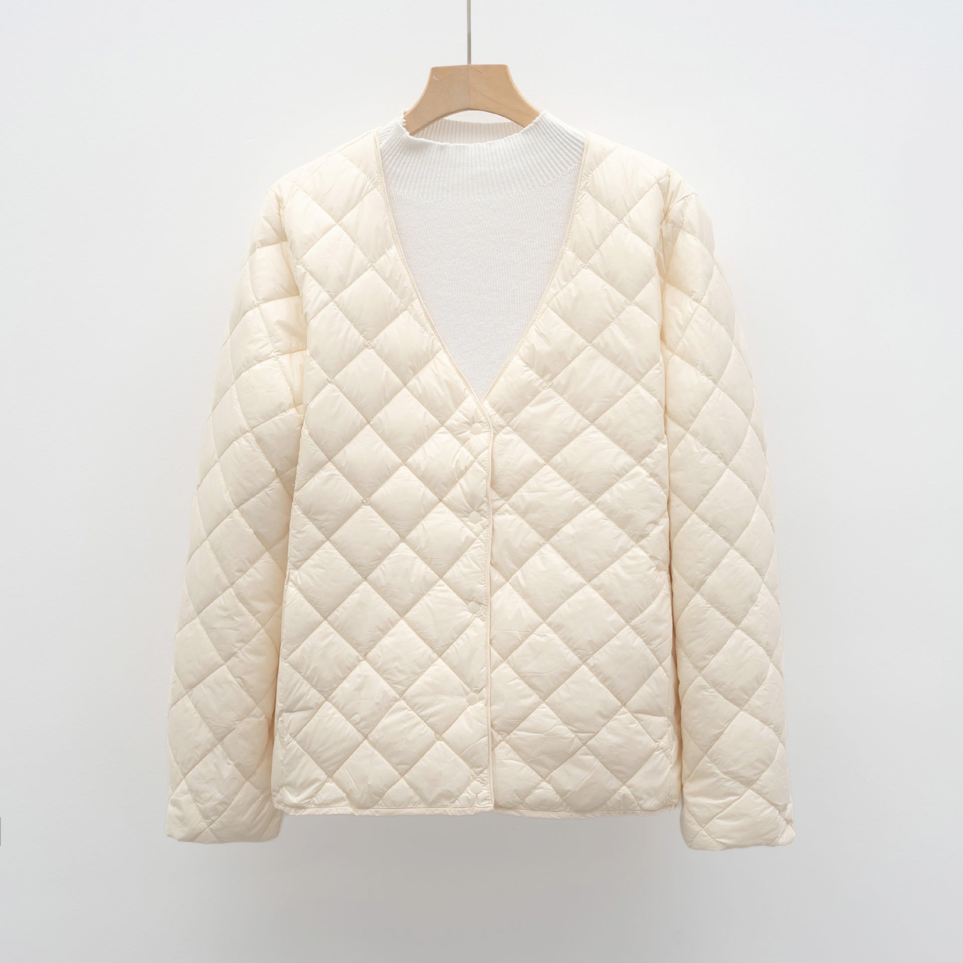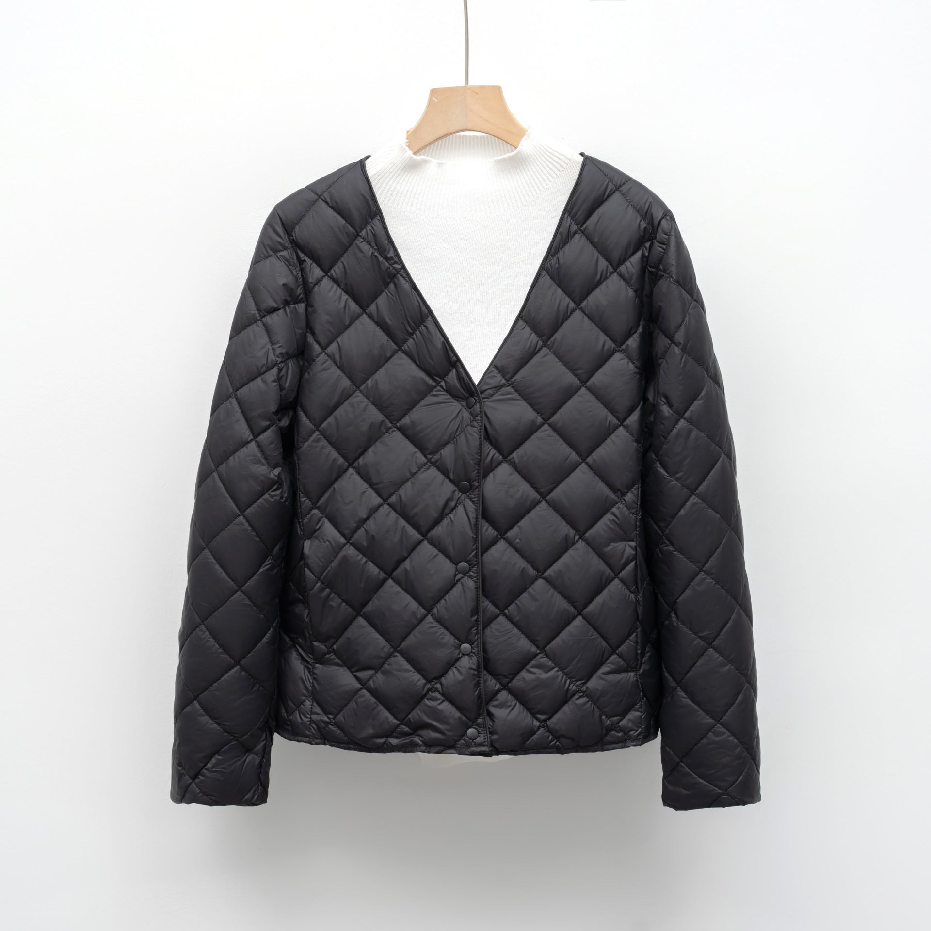 Damen gesteppte Übergangsjacke mit modernem V-Ausschnitt und knöpfbarem Verschluss Amawinc