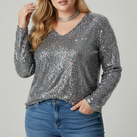 Feiern Sie Ihre Kurven mit diesem funkelnden Top, das speziell für große Größen entworfen wurde. Perfekt für Partys, festliche Anlässe oder einen eleganten Abend – das subtile Glitzerdetail und der schmeichelhafte V-Ausschnitt ziehen alle Blicke auf Sie.