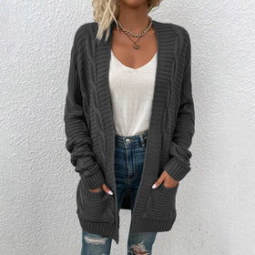 Damen Grobstrick-Cardigan mit großen Taschen und strukturiertem Design Amawinc