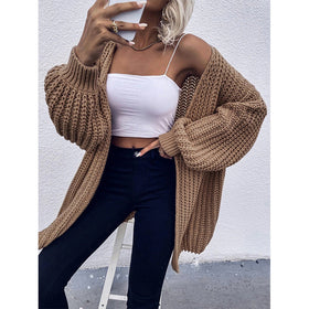 Damen Grobstrickjacke mit voluminösen Ärmeln und offener Front Amawinc