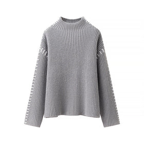 - Design: Das lässige, grobe Strickmuster und der schicke hohe Kragen sorgen für einen trendigen Look, während die dekorativen Details an den Ärmeln das Gesamtbild aufwerten.