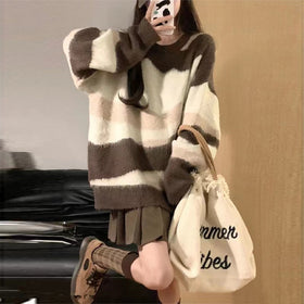 Damen Grobstrickpullover mit modischem Streifenmuster und lässigem Schnitt Amawinc