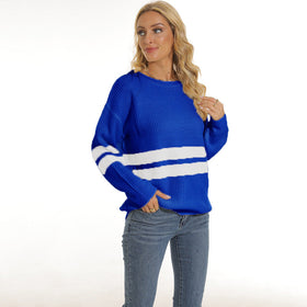 Damen Grobstrickpullover mit sportlichem Streifenmuster und lockerer Passform Amawinc
