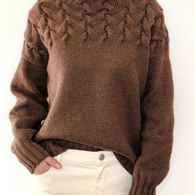 Damen Grobstrickpullover mit Stehkragen und Zopfmuster Amawinc