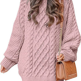 Damen Großer Strickpullover mit Zopfmuster und lässigem Schnitt Amawinc