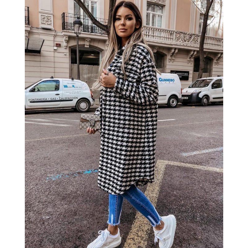 Damen Hahnentritt-Muster Oversized Hemdjacke Amawinc