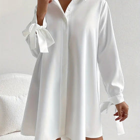 Damen Hemdblusenkleid mit eleganten Bändern an den Ärmeln Amawinc