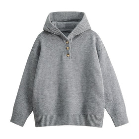 Damen Hochwertiger Strickpullover mit Stehkragen und Knopfdetails Amawinc