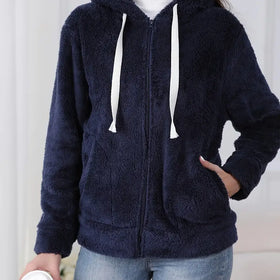 Damen Kapuzenjacke aus Plüsch mit Reißverschluss von Fudus