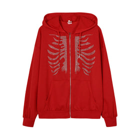 Damen Kapuzenjacke mit einzigartigem Skelett-Design und funkelnden Strasssteinen Amawinc