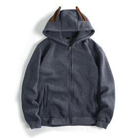 Damen Kapuzenjacke mit kreativen Ohren-Details und praktischem Reißverschluss Amawinc