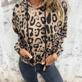 Damen Kapuzenpullover mit lässigem Leopardenmuster und praktischen Seitentaschen Amawinc