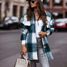 Damen Karierte Overshirt-Jacke mit praktischen Brusttaschen Amawinc
