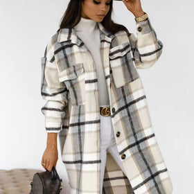 Entdecken Sie unseren stilvollen Damen Karierter Oversized-Hemd-Mantel mit praktischen Taschen von Amawinc – das perfekte Kleidungsstück für die kühleren Tage des Jahres. Dieser vielseitige Mantel kombiniert Komfort mit einem modischen Look und ist ideal für unterschiedlichste Anlässe.