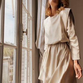 - Stylische Details: Die angeschnittenen Ärmel verleihen dem Kleid eine modische Note und machen es zu einem wahren Hingucker.