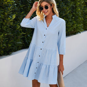 Damen Kleid: Modisch, kariert, V-Ausschnitt, Dreiviertelärmel von Fudus